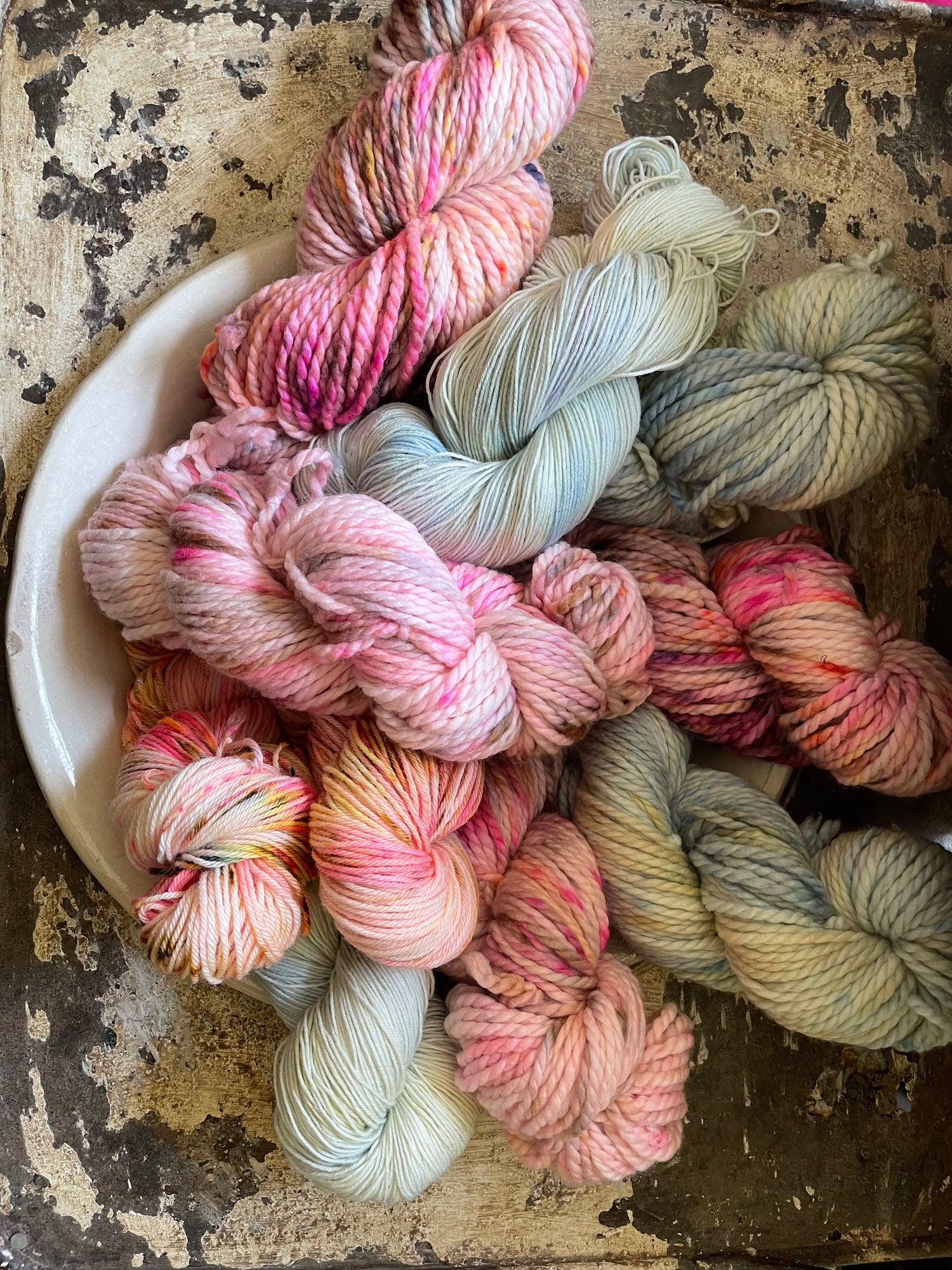 Bespoke, small assortment, novelty and upscale yarns dyed for you with love aways